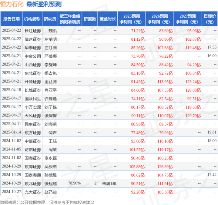 盈利预测与投资评级:根据最新季报及审慎原则,我们调整2025年-2026年公司EPS分别为1.10元、1.57元(原值为1.50元、1.80元),新增预测2027年EPS为1.83元。对应PE(以2025年4月22日收盘价计算)分别为14.15倍、9.90倍和8.52倍。油价在下跌过程中,下游的石化企业会有一定的库存跌价损失,但是以需求带动的底部上涨的过程中,下游价差则会扩大;公司作为民营大炼化龙头,产业链全、具有一体化成本优势,有望未来受益炼化新一轮景气周期。我们看好公司分红持续增强的龙头属性,维持“买入”评级。